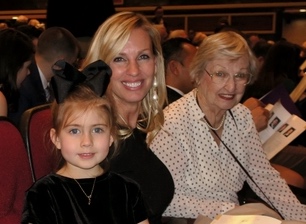 图11:彤达拉雅·皮尔逊(Tondalaya Pearson)(中)和母亲、女儿等一起观看了一月五日晚神韵环球艺术团在北卡州杜克能源艺术中心罗利纪念礼堂的演出。