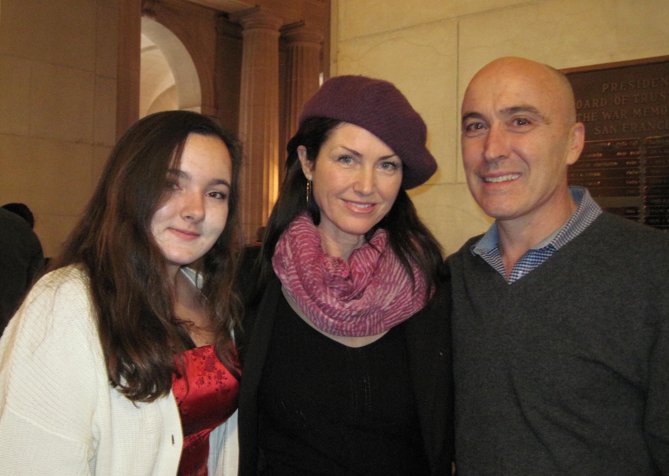 图13:加州旧金山一家著名消费者智能家居公司August Home的业务和行销副总裁戴尔·皮斯蒂利(Dale Pistilli)先生带着女儿(左)和诺顿(Naughton)女士(右)一起观看了一月五日神韵纽约艺术团在旧金山歌剧院的演出。他们表示:“神韵给他们带来幸福和欢乐。”