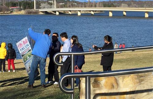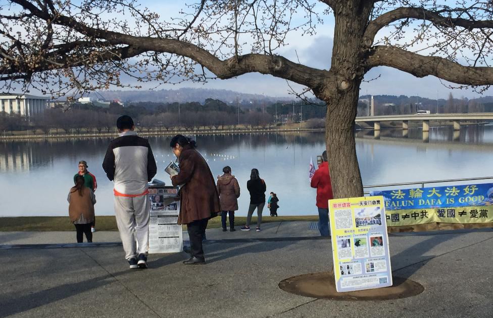 ![]() 图1~2:堪培拉法轮功学员在联邦公园向中国人讲真相 |