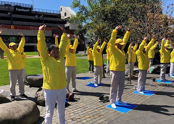 - 新西兰民众:世界需要真善忍(图)- 二零一九年十月十二日星期六,新西兰奥克兰法轮功学员来到新市场商业街炼功,展示法轮大法的美好,并呼吁人们来关注中国存在的人权问题。