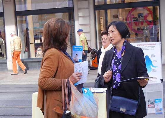 - 瑞士学员日内瓦市中心传真相(图)- 十月十二日,瑞士法轮功学员,在日内瓦市中心的商业步行街向世人介绍法轮功真相,并揭露中共的残酷迫害,甚至活摘法轮功学员器官的反人类罪行。