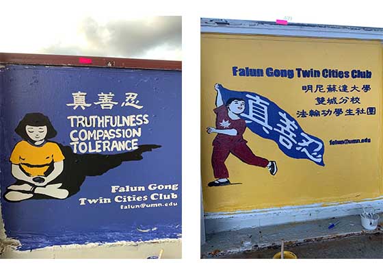 - 饱含善意与祝福的绘画(图)- 九月二十六至二十七日是美国明尼苏达大学双城分校一年一度的大桥作画活动。该校的法轮功学生俱乐部再次应邀参加了这次活动。