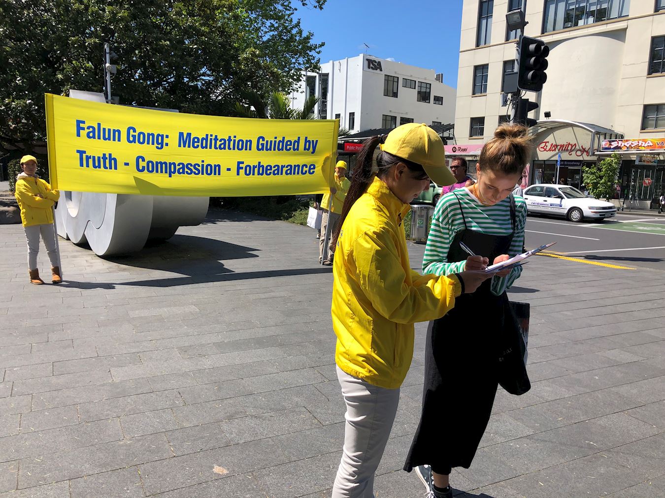 安妮是一位当地居民,她说自己知道法轮功学员在遭受中共迫害,也知道他们被中共活摘器官。她愤慨地谴责道:“(中共)这实在是一个邪恶的政权!法轮功学员应将如此邪恶之事曝光于天下,让更多的人了解这一事实真相,因为还有很多新西兰人不知道。法轮功学员应该继续举办这样的活动,让人们来关注。”