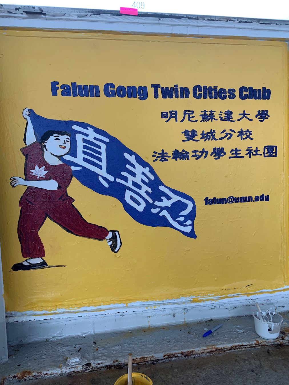 【明慧网二零一九年十月十三日】二零一九年九月二十六至二十七日是美国明尼苏达大学双城分校(University of Minnesota-Twin Cities)一年一度的大桥作画活动。这项活动作为该校的传统,让学生社团有机会在一年中以绘画的形式向全校成千上万的师生展示和宣传他们的社团。大桥上面每个画板的绘画作品都是由学生社团设计并画上去的。该校的法轮功学生俱乐部(Falun Gong Twin Cities Club)再次应邀参加了这次活动。