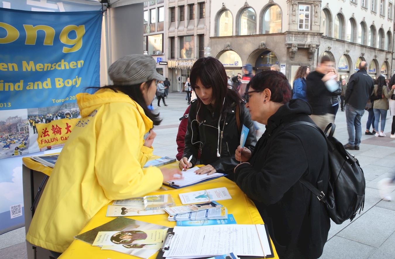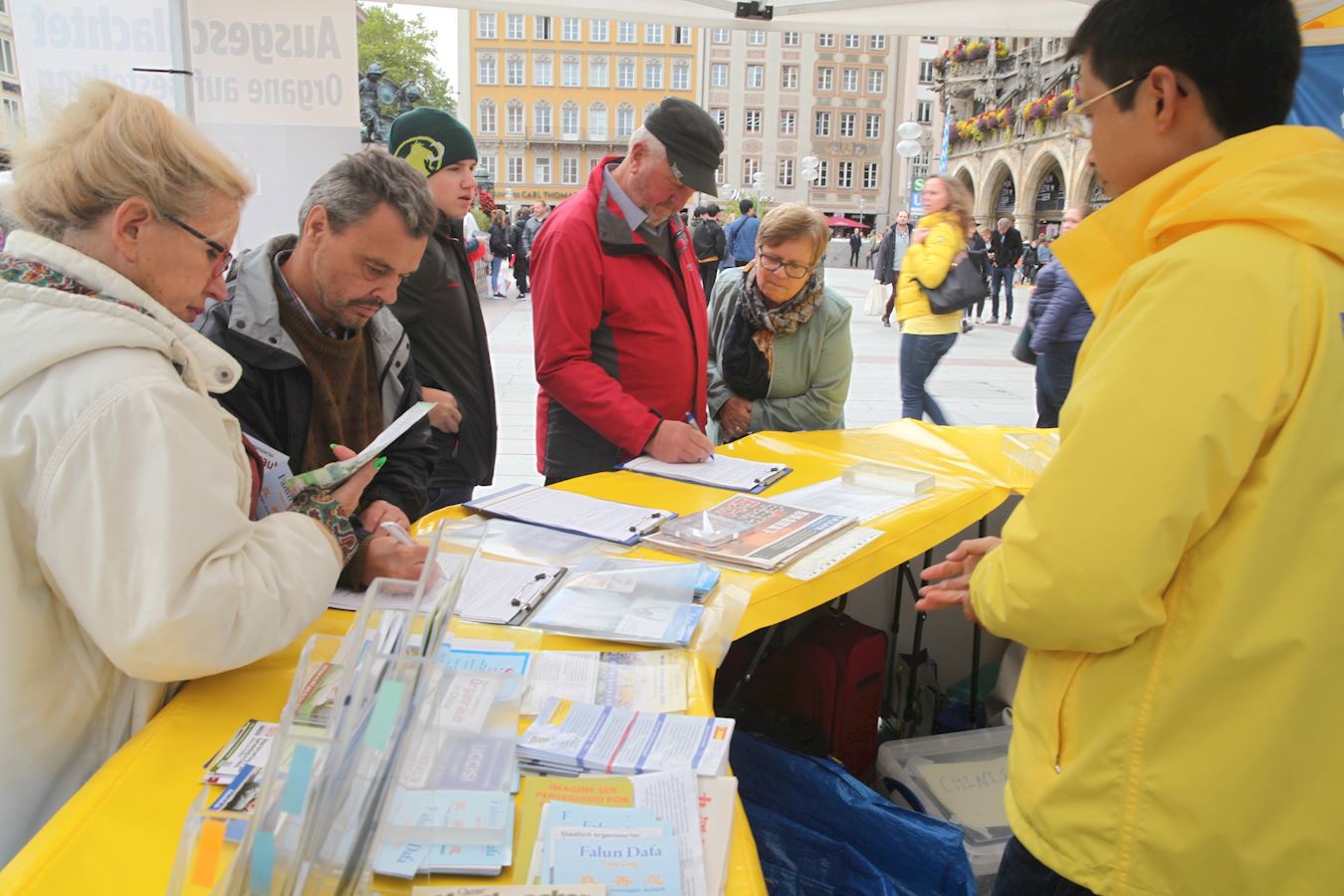 '图6:十月三日(德国统一日)在慕尼黑玛琳广场,人们想多了解法轮功真相,'