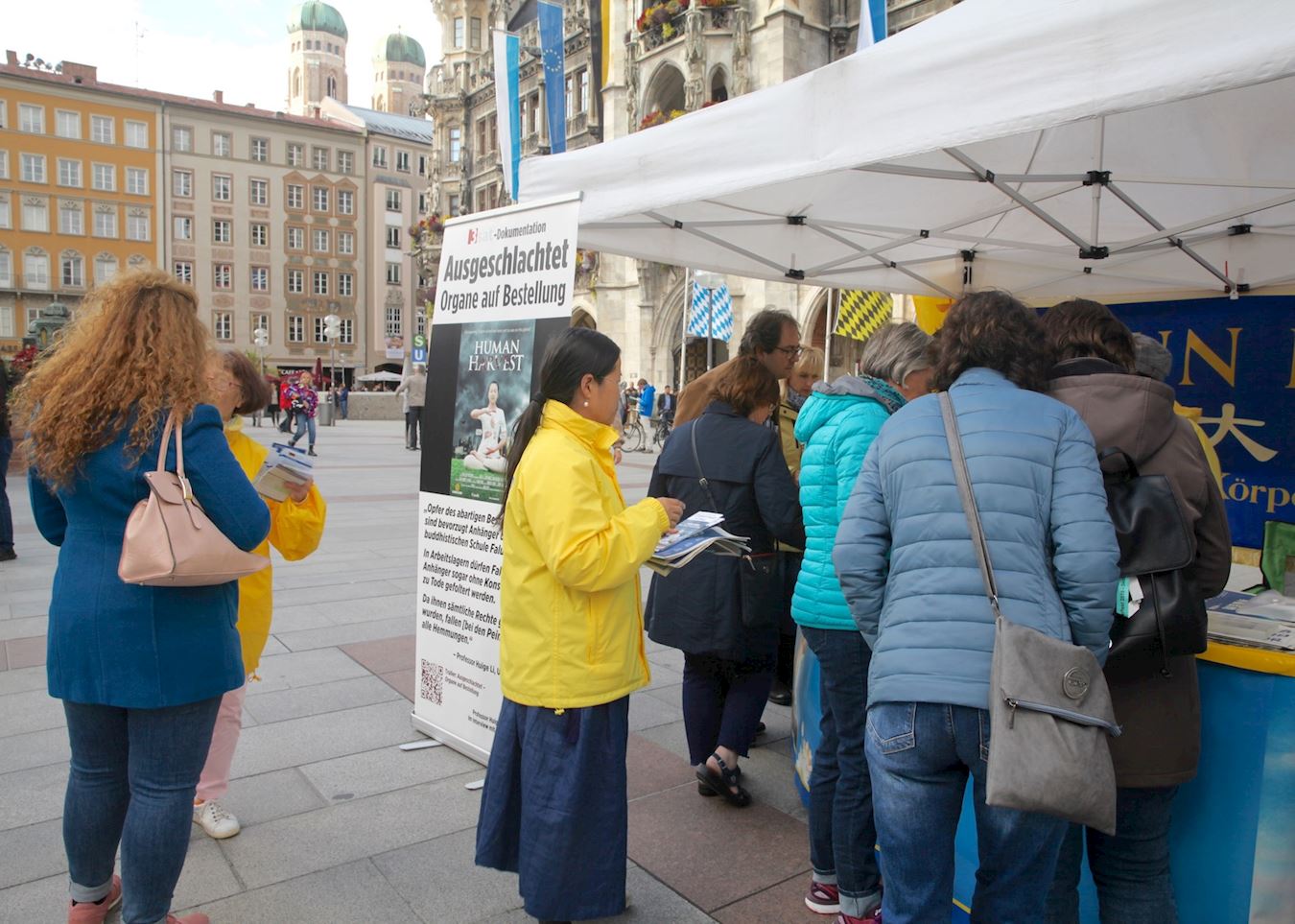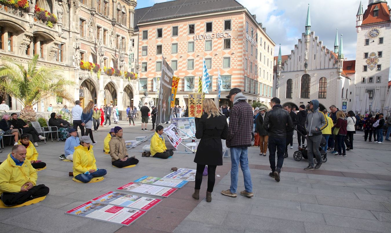 【明慧网二零一九年十月十四日】(明慧记者德祥德国慕尼黑报道)慕尼黑啤酒节(Oktoberfest)历史悠久,德语名字是“十月节”的意思。每年九月末到十月初在德国的慕尼黑举行,加上适逢十月三日德国统一日,该庆典活动持续两周,是慕尼黑一年中最盛大的活动。在刚结束的二零一九年慕尼黑啤酒节期间,德国学员加紧向德国民众和来自世界各地的游客讲述法轮功学员反迫害的真相,在市中心最繁华的玛琳广场举办了多次活动。