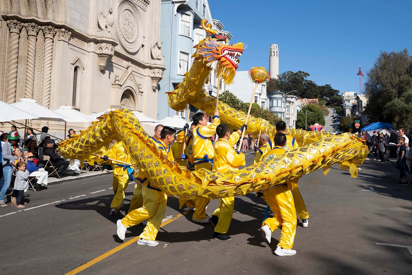 旧金山第一百五十一届哥伦布节庆典大游行于中午十二点半开始,队伍从旧金山著名景点渔人码头出发,途经哥伦布大道,然后环绕中国城与意大利城交界的主要街道,最后在意大利城中心公园——华盛顿公园结束。
