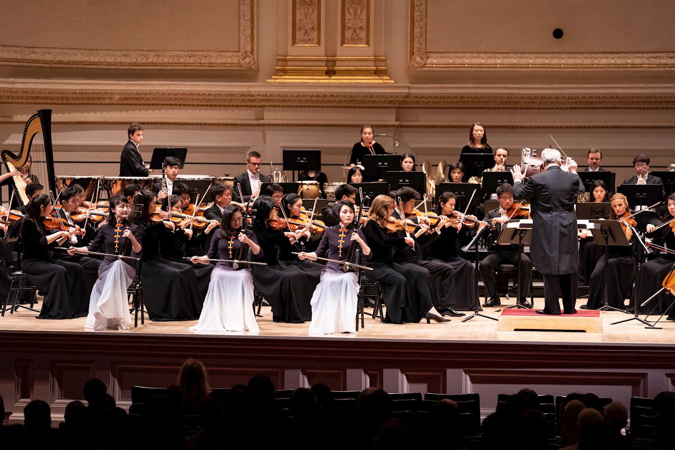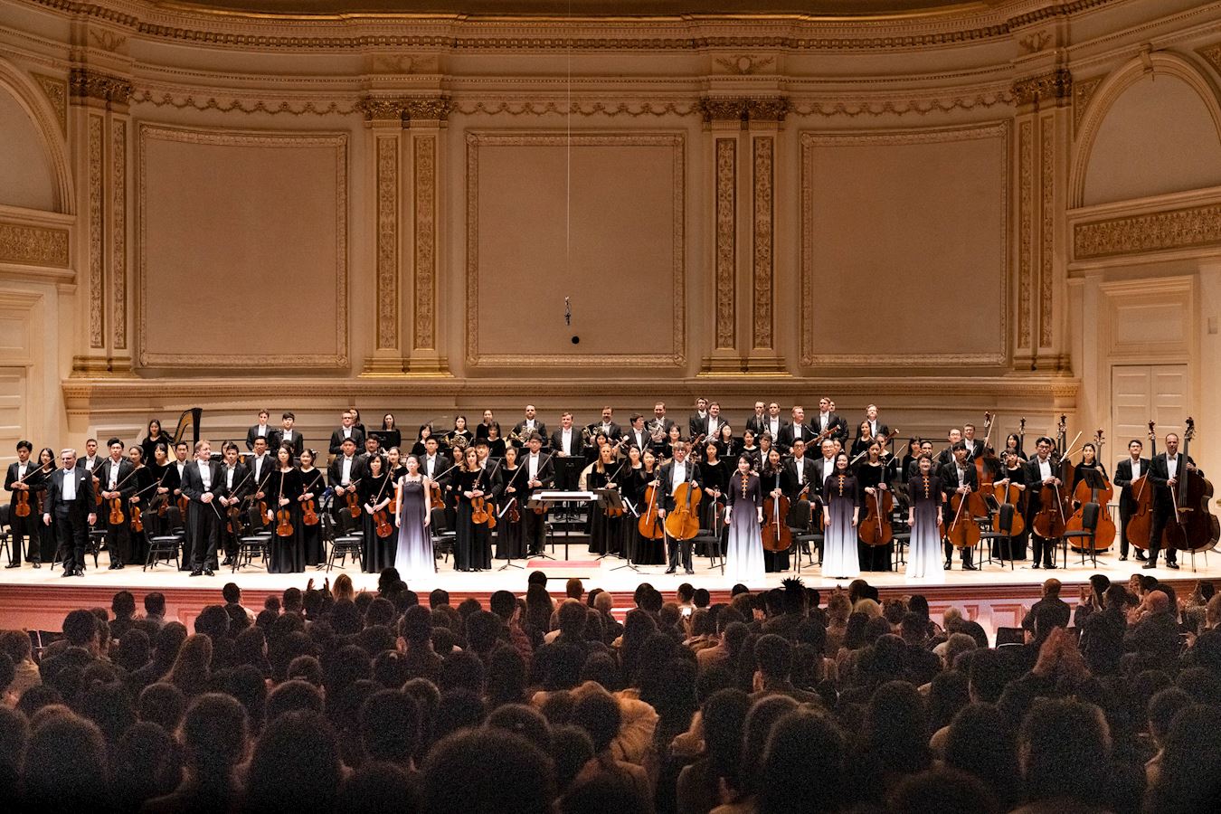 '图1~2:二零一九年十月十二日,享誉全球的神韵交响乐团在世界著名的纽约卡内基音乐厅(Carnegie Hall),给观众带来两场由中西方古典音乐精髓结合的5000年文明的交响之音。'