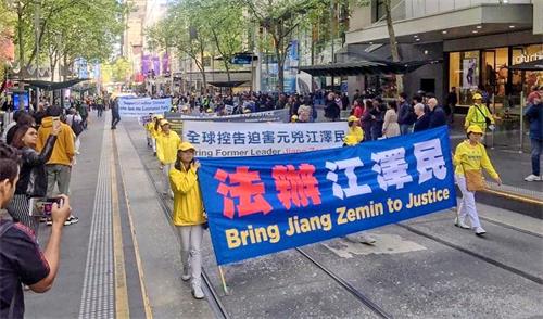 中午时分,游行队伍从维多利亚州议会大楼附近的财政花园(Treasury Gardens)出发,由天国乐团奏响“法轮大法好”拉开大游行的序幕,气势雄壮威武。游行队伍还包括“法轮大法好”、“和平理性反迫害”、“声援三亿四千万中国勇士退出中共党团队”等主题方阵。浩浩荡荡的游行队伍途径最繁华热闹的街道,熙熙攘攘的游客和当地民众感受到法轮功学员们传递的美好与希望。