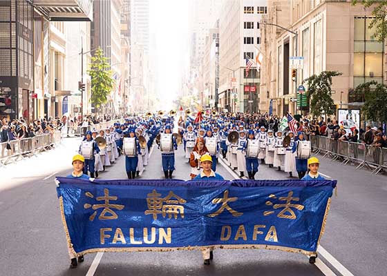 十月十四日,纽约第五大道上人声鼎沸,第七十五届纽约哥伦布日大游行盛大举行。由法轮功学员组成的天国乐团也参加了这个游行。