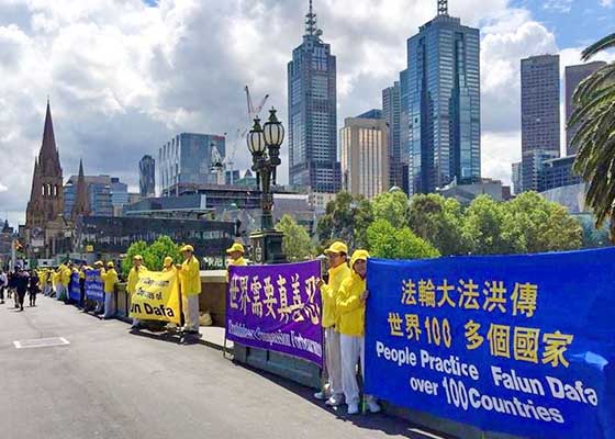 十月十二日,来自澳洲各地的法轮功学员在墨尔本市中心王子桥两侧筑起“勇气长城”,同时在多地设立法轮大法信息台,很多民众了解了真相。