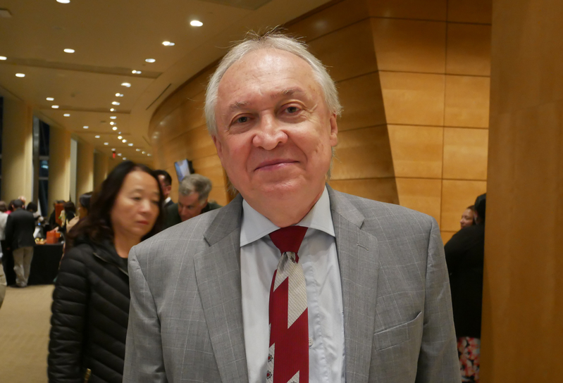 ![]() 图9:美国海军陆战队远程教育学院教务主任约翰·海姆莱本(John Hemleben)先生欣赏了神韵交响乐团在斯特拉斯莫尔音乐中心的演出后,赞叹不已。 |