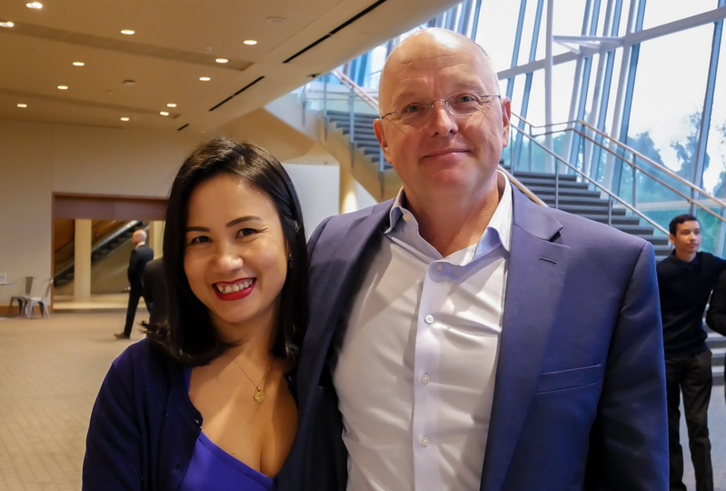 ![]() 图10: “DC国际俱乐部”(International Club of DC)总裁海蒂希瓦(Sanjaya Hettihewa)(右)在斯特拉斯莫尔音乐中心(Music Center At Strathmore)欣赏了神韵交响乐团的演出。 |