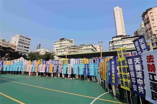 当天早上,法轮功学员在九龙枫树街游乐场集体炼功后,随即举行集会。多位政要名人在会上发言支持法轮功反迫害,谴责中共暴政,声援三亿四千多万中国民众退出中共党、团、队,并呼吁各方努力促成中共解体,迎来中国的新生。