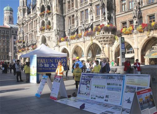 ![]() 图2~3:二零一九年十月二十六日,德国法轮功学员在慕尼黑玛琳广场举办信息日活动。 |