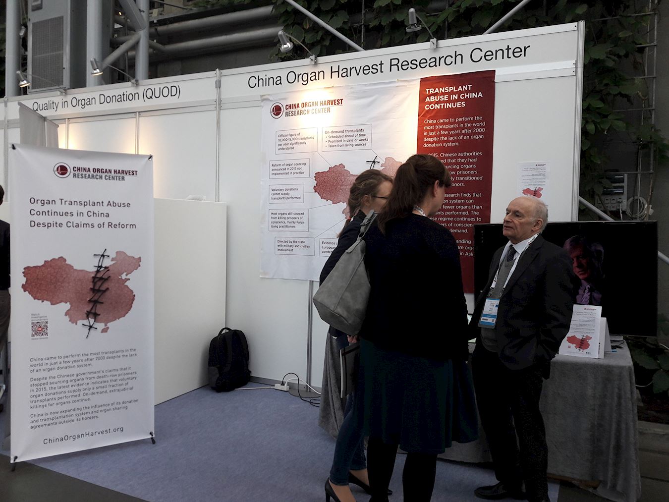 大会还举办了与移植领域相关的展览。专门调查和介绍中国器官移植滥用的研究机构“中国(中共)器官摘取研究中心”(China Organ Harvest Reserch Center- COHRC)也作为43个参展单位之一,受邀在大会内部设立专门展位,向与会者提供相关资料。
