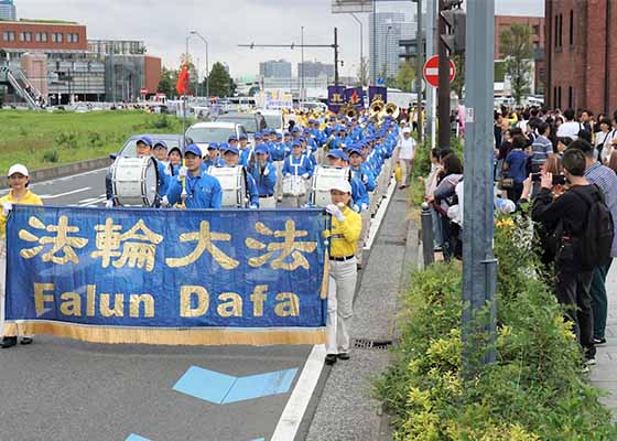 - 日本横滨举行反迫害游行 民众声援法轮功(图)- 十月六日,日本法轮功学员在横滨繁华区举办反中共迫害游行,庆祝三亿四千万勇士三退(退出中共党团队)。