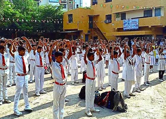 印度中部城市高中师生学炼法轮功