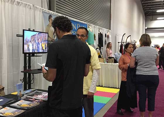 二零一九年十月五日到六日,首届瑜伽与健身展在渥太华EY中心举办。当地法轮功学员受邀前来,向人们介绍法轮功。
