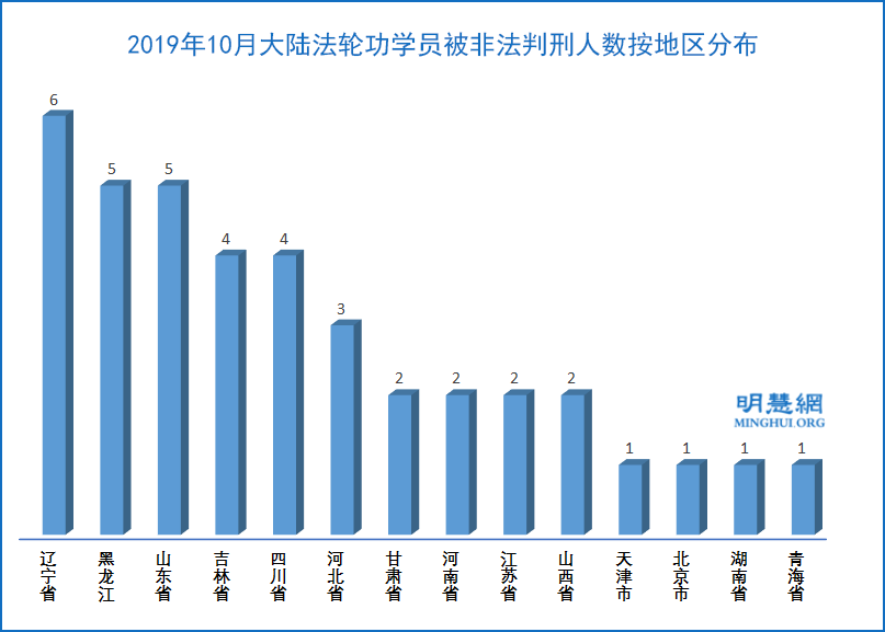 据明慧网信息统计,二零一九年十月份至少39名法轮功学员被非法判刑,分布在十四个省、自治区、直辖市的22个城市。