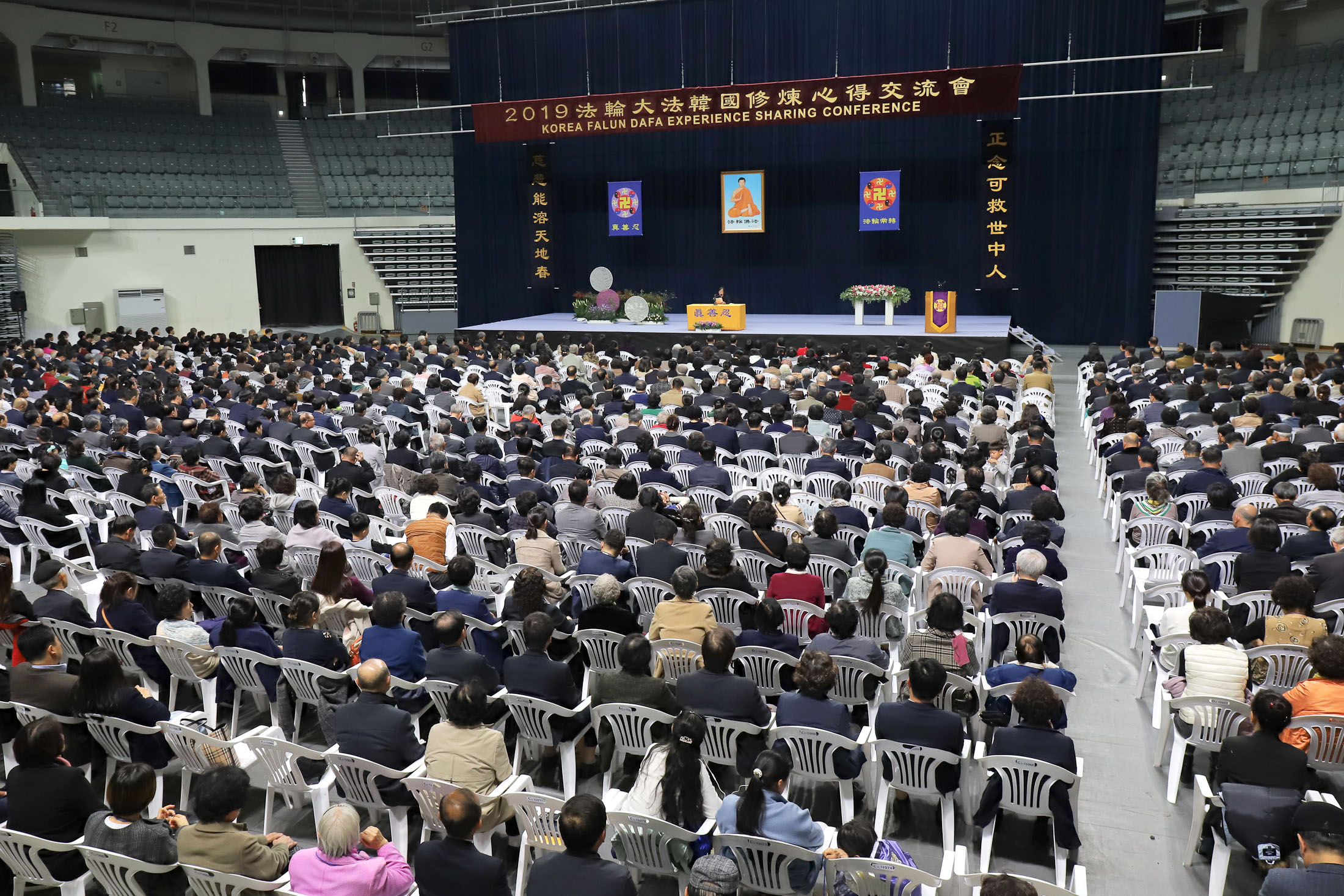 ![]() 图1~3:二零一九年十一月十日,来自韩国各地的约一千一百名法轮功学员在首尔中心的奖忠体育馆召开了“二零一九法轮大法韩国修炼心得交流会”。 |