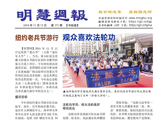 纽约老兵节游行 观众喜欢法轮功