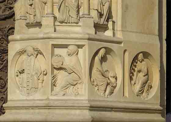 - 从一段艺术史看人类思想的变迁(2)- 除了祭坛画和彩色玻璃花窗,教堂建筑的另一大装饰自然是雕塑作品。哥特式雕塑主要体现在高浮雕和圆雕这类能展现出一定景深效果的雕像中,以增强教堂的空间感。