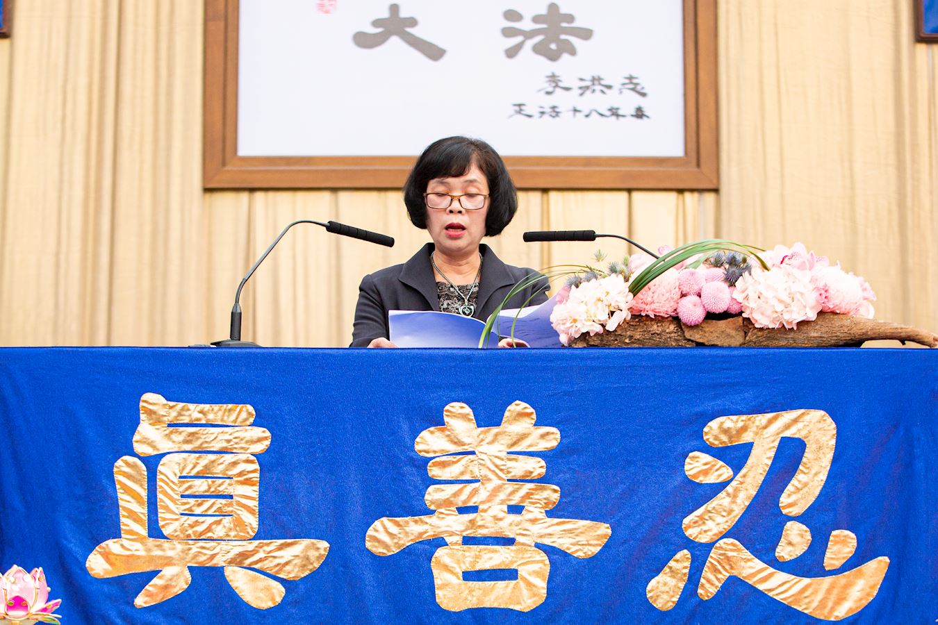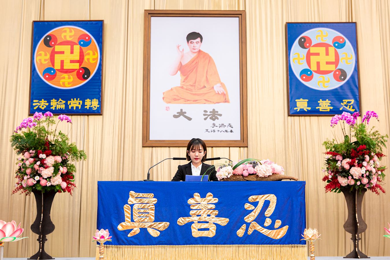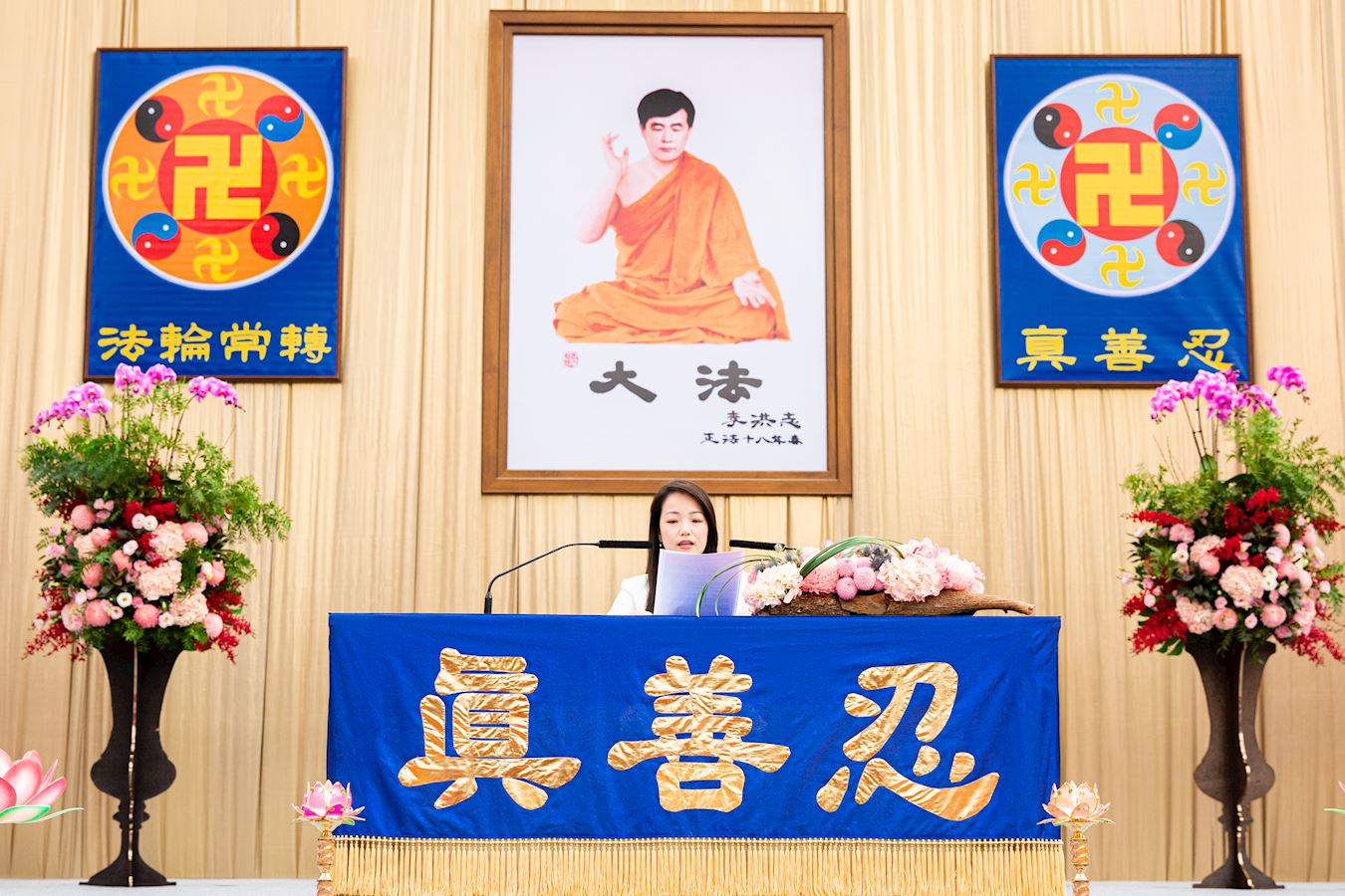 法会上,二十名来自各行各业的学员上台发言,交流修炼法轮大法后的身心变化的殊胜体会,以及向社会各界讲述法轮功真相的过程中,如何按照真善忍的原则指导修炼,在查找自身不足中突破各种困难与怕心,坚持不懈救人,展现法轮大法的美好的体会。