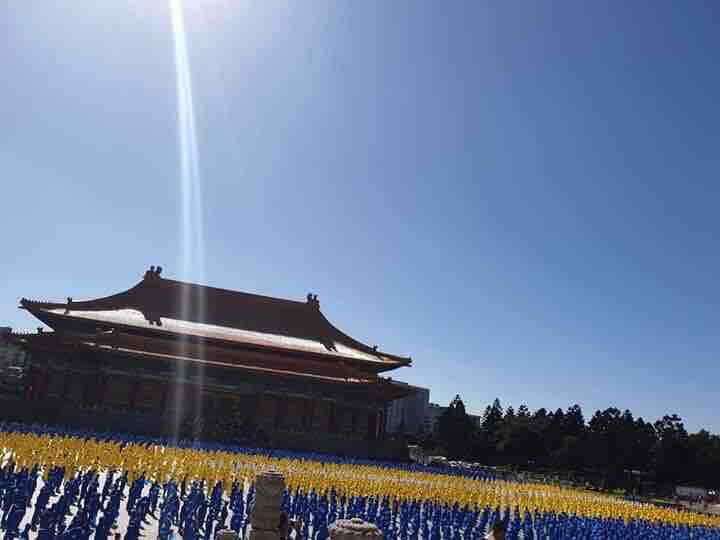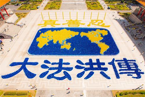 将近二十年来,每年参与规划、协调乃至安排进场排字顺序的台湾学员黄春梅女士表示,“台湾是大陆以外法轮功学员最多的地方,有排字的便利条件,自二零零零年,以湖北武汉法轮功学员的排字‘法轮大法好’作为参照,排出英文字‘法轮大法 真善忍’以来,至今不曾中断。每年排新的图像,从不同角度与面向展现法轮大法的美好,今年在自由广场排字主题‘法轮大法洪传世界’的盛况,更突显台海两岸形成强烈的对比。”