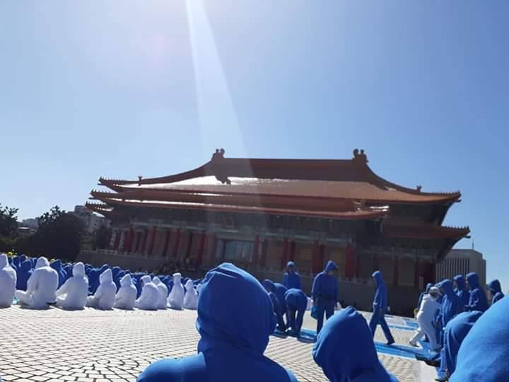 ![]() 图1~2:真善忍洪传世界,台湾六千人排字纪念。 |