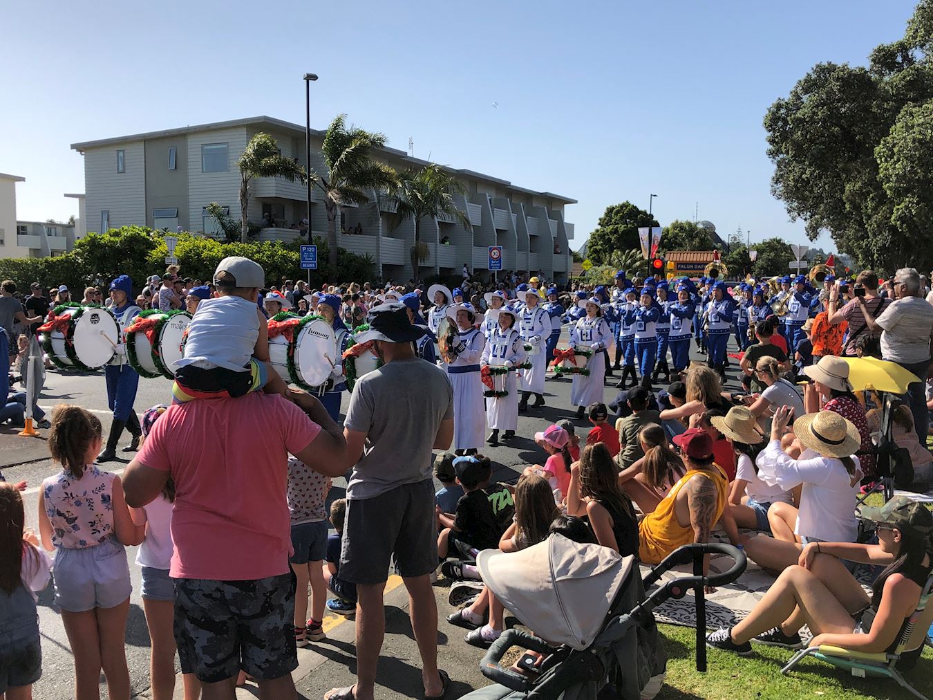 【明慧网二零一九年十一月二十四日】(明慧新西兰记者站报道)奥雷瓦(Orewa)是位于新西兰奥克兰以北,大约四十公里的一个小镇,有着长达三公里的海岸线,风景十分秀美,是非常受欢迎的度假胜地。二零一九年十一月二十二日星期六,法轮大法(又称法轮功)学员受邀参加了奥雷瓦最盛大的圣诞游行。