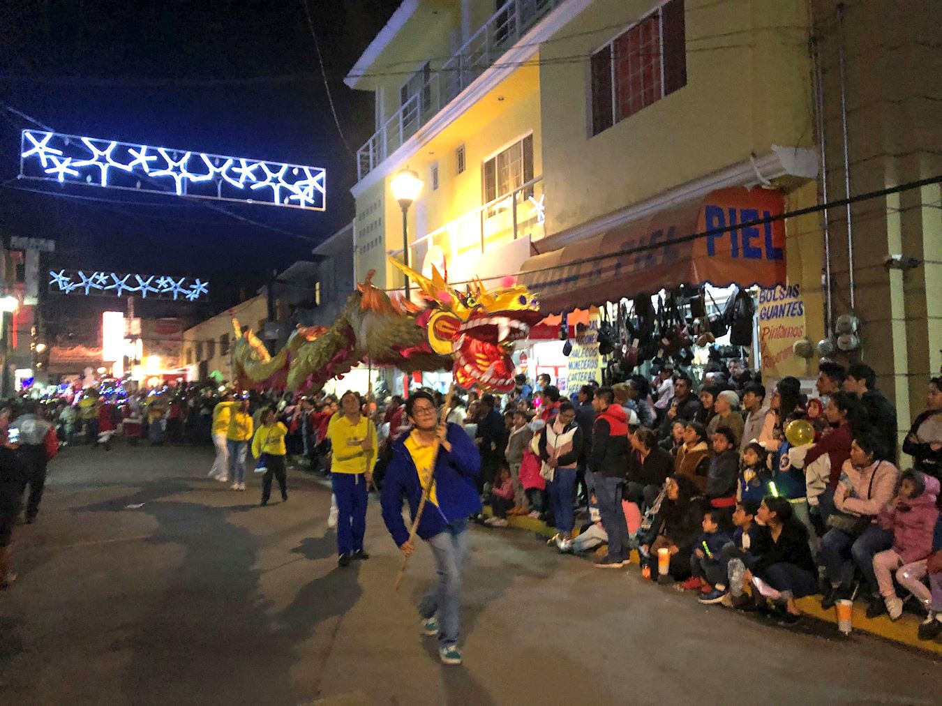 【明慧网二零一九年十一月二十八日】二零一九年十一月二十二日,墨西哥法轮功学员参加了特拉斯卡拉州(Tlaxcala)赤奥特马潘市(Chiautempan)圣诞游行,受到欢迎。这是法轮功学员第二次参加圣诞游行。