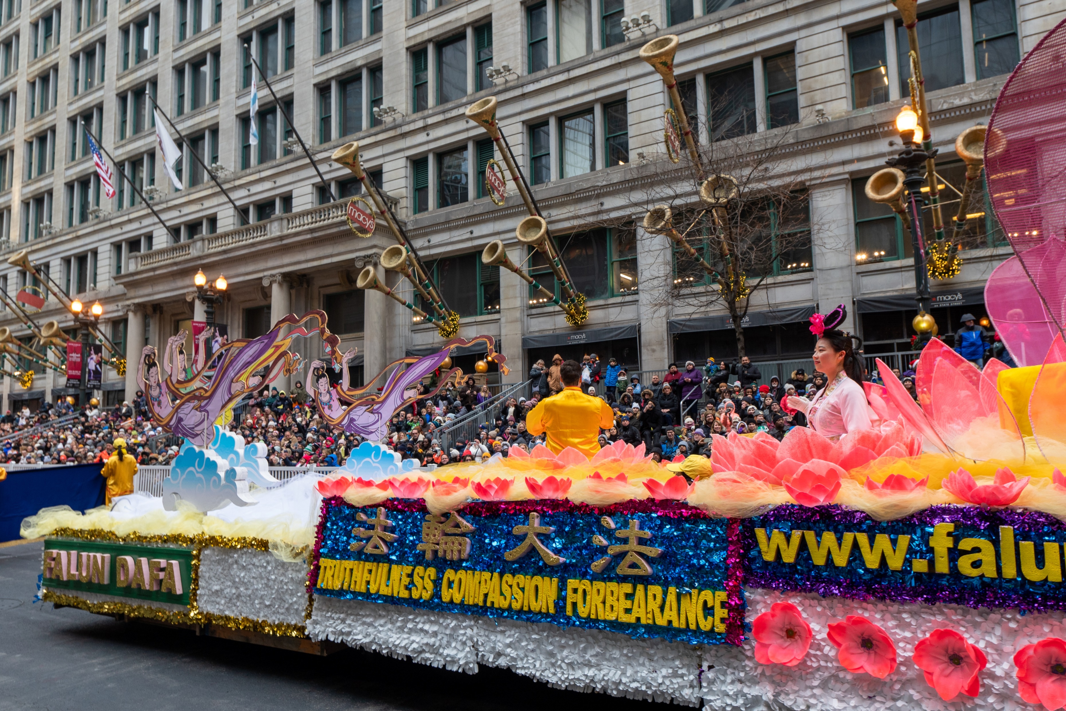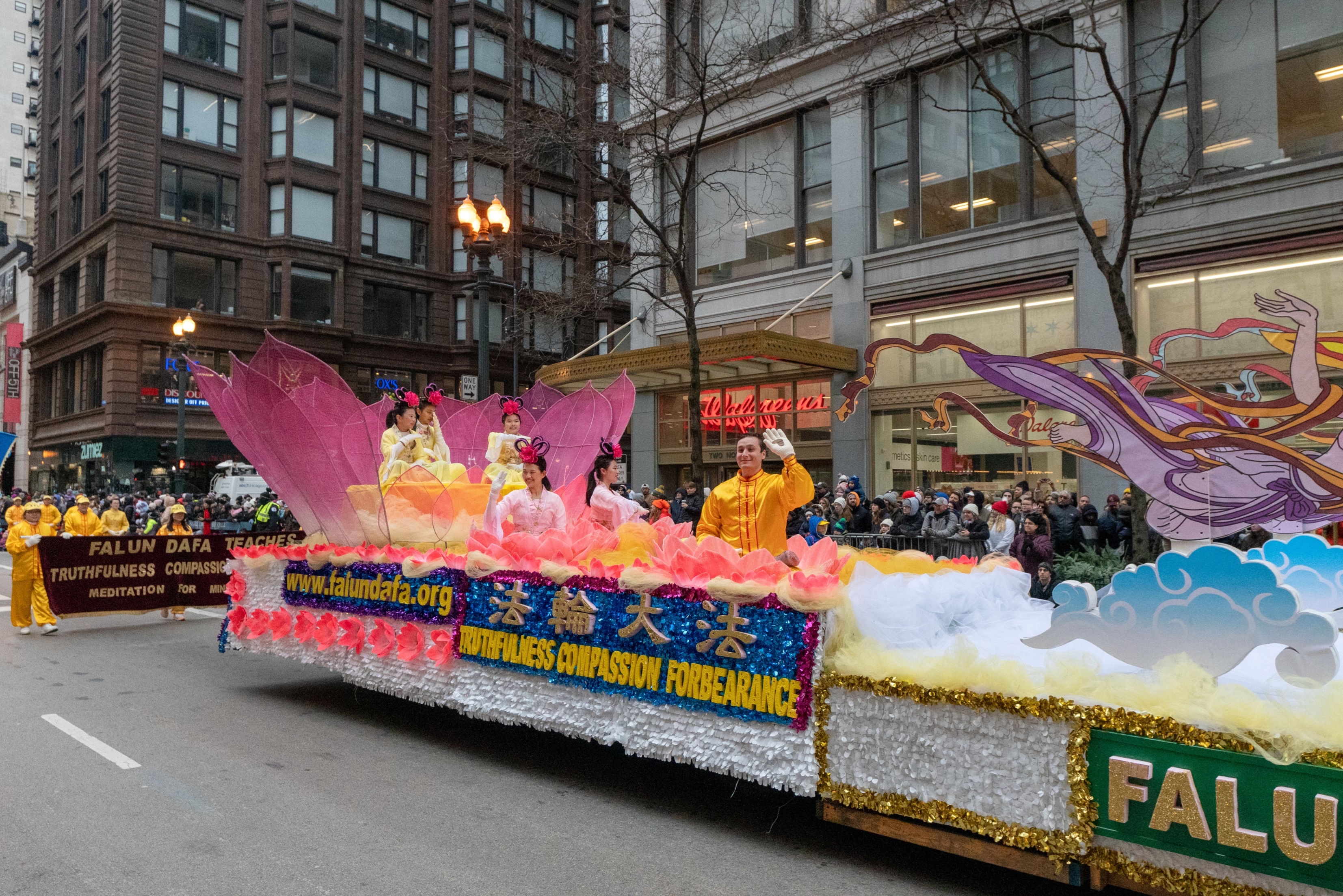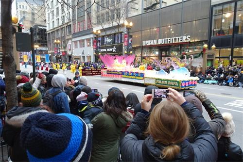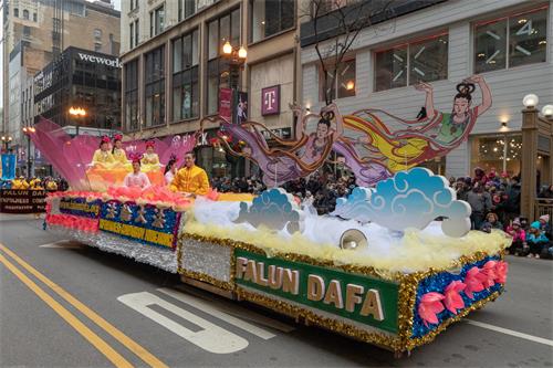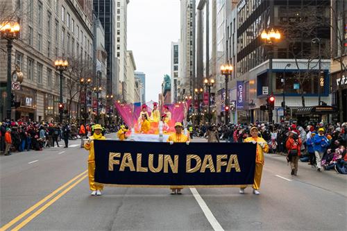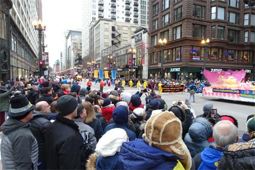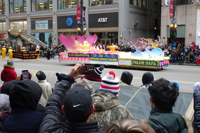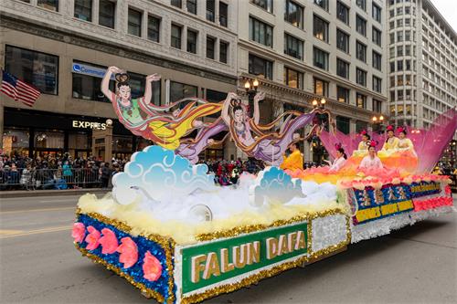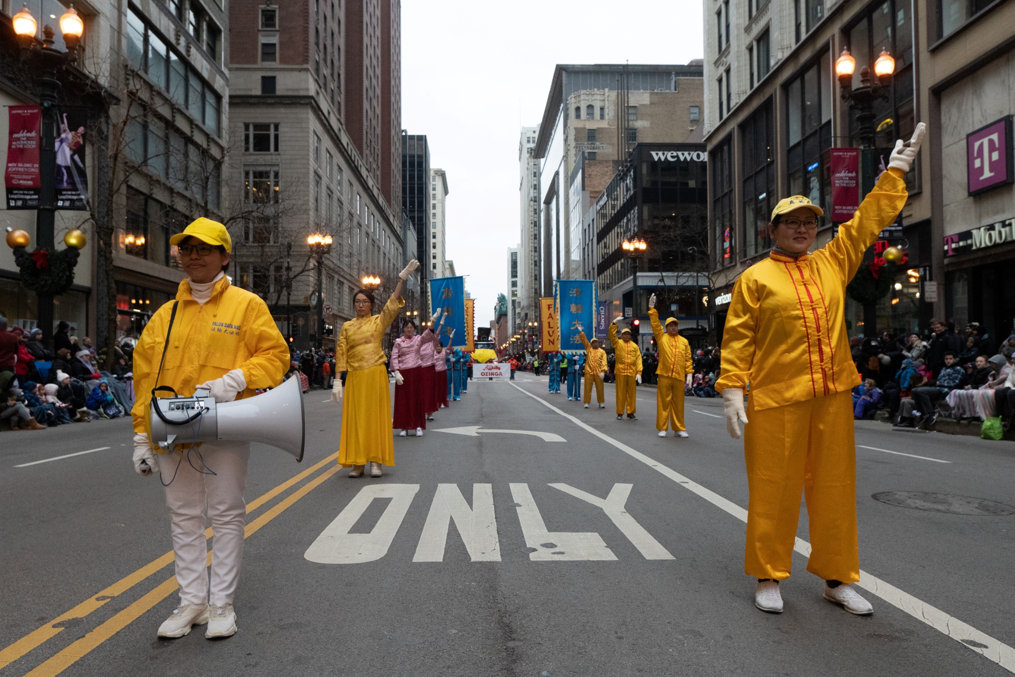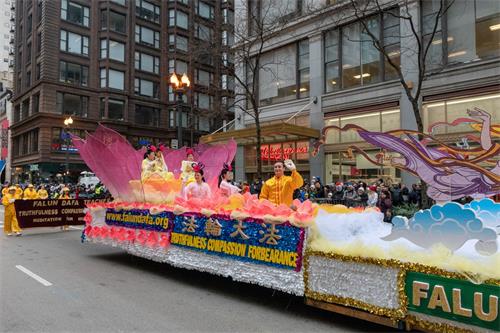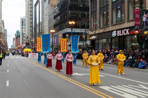 【明慧网二零一九年十一月三十日】二零一九年十一月二十八日周四,芝加哥迎来第八十六届感恩节大游行。它是通过电视直播的美国三大游行之一,亦有数万现场观众。