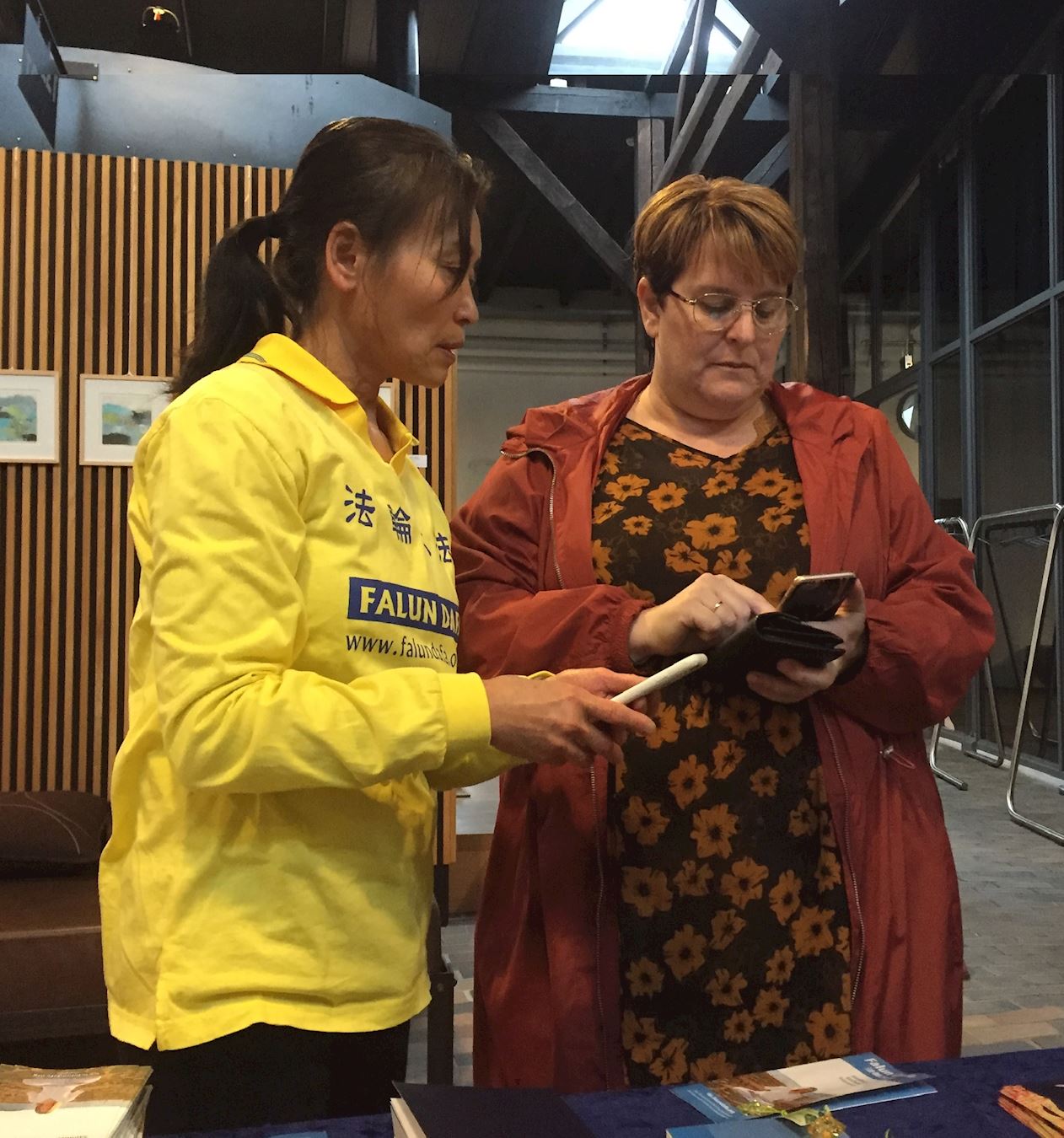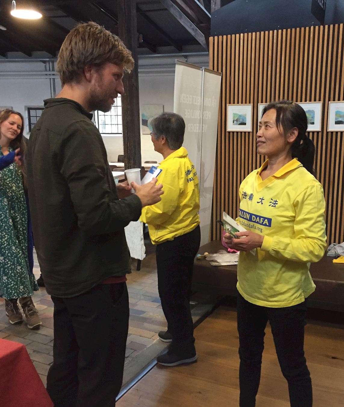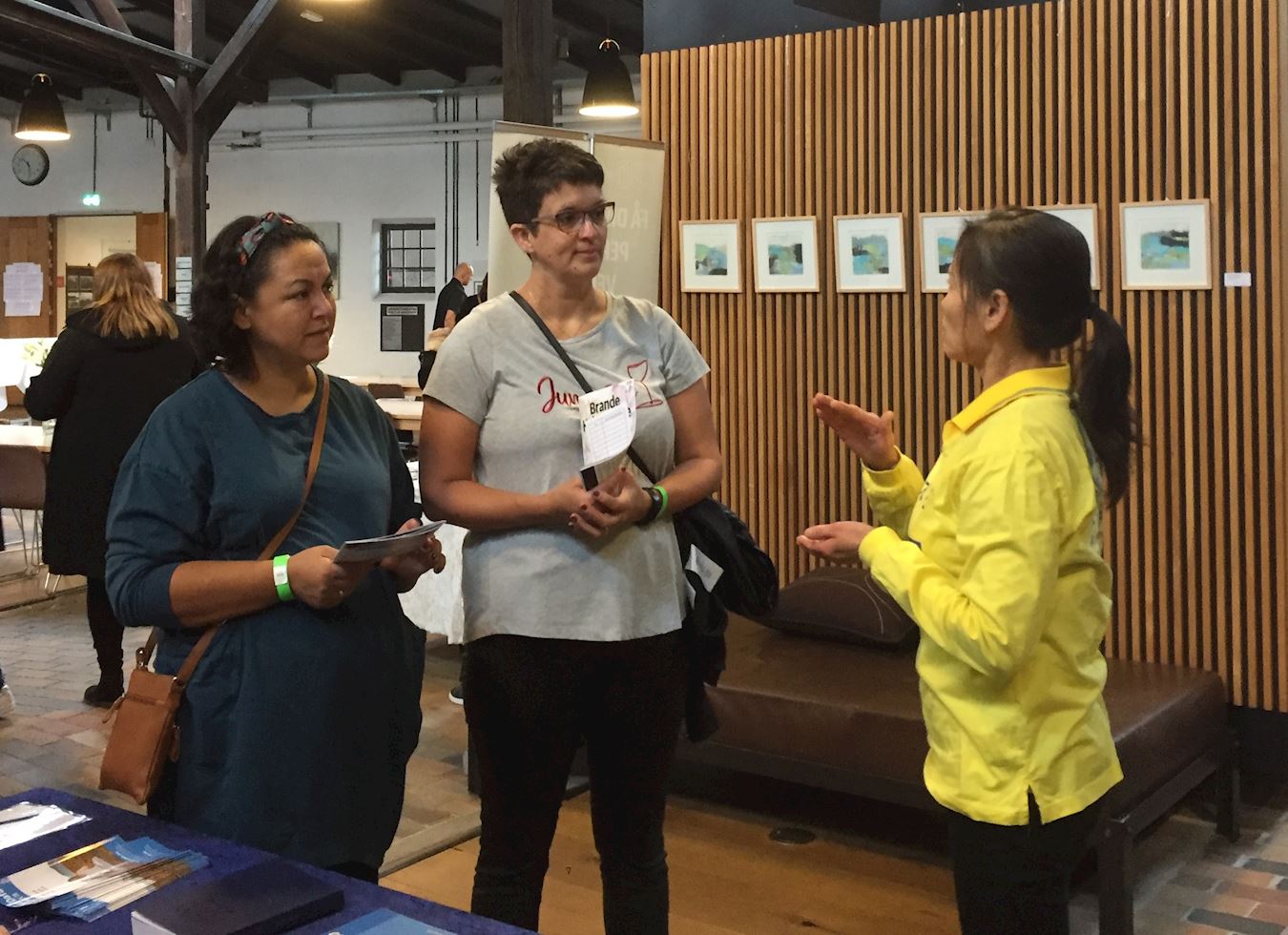 图5:安妮特(Anette)跟学员交谈,了解法轮功。
