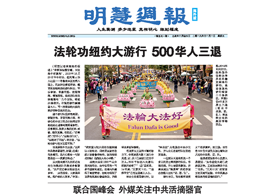 - 明慧周报:海外版(第五七一期)- 法轮功纽约大游行 500华人三退