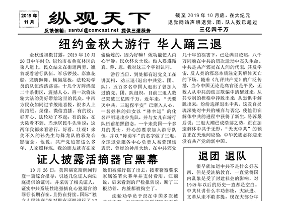 - 真相传单:纵观天下(2019年11月)- 纽约金秋大游行 华人踊三退