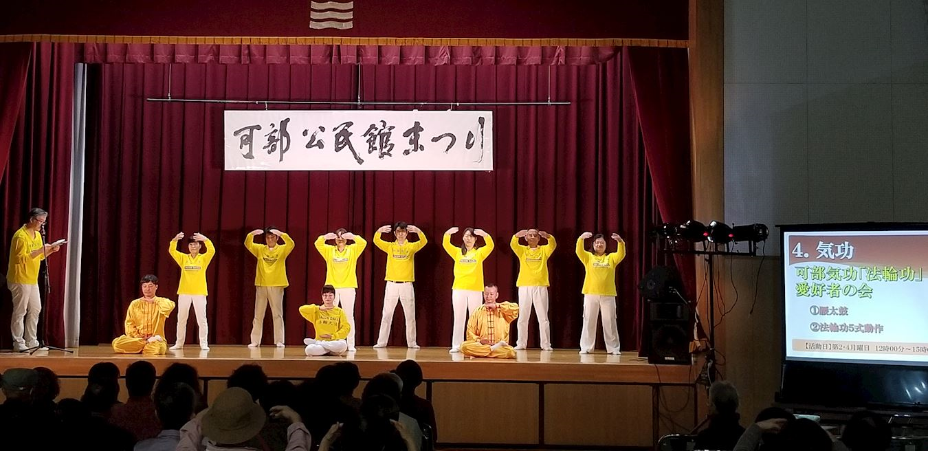 二零一九年十一月二日至三日,第四十八届可部公民馆庆典(Kabe Kominkan Festival)在广岛市安佐北区福祉中心(Asakitaku Fukushi Centsr)举行。活动当中除了舞台文艺表演之外,还有绘画、摄影、书法、乡土史、园艺、洋裁、木刻、手工作品展示,义卖广场,各种日式特色食品和当地农家新鲜蔬菜的专卖等,从福祉中心大楼到外部大广场,人群熙熙攘攘,热闹非凡。法轮功学员参加了三日的舞台表演,演示了法轮功的五套功法动作和中国传统腰鼓舞,向当地民众介绍法轮大法的美好,受到当地民众瞩目。