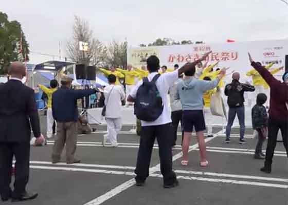 - 日本川崎市民节 民众学炼法轮功(图)- 11月2日至4日,一年一度的川崎市民节在日本神奈川的川崎市富士见公园举行。该活动每年都吸引五十万以上的观众前来参观。