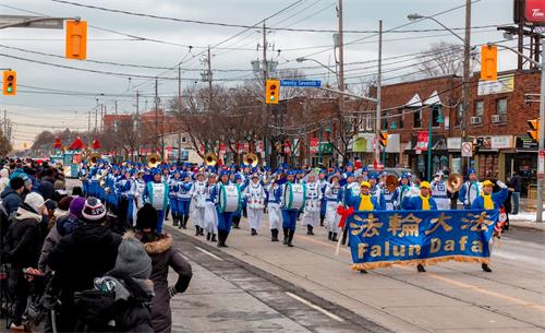'图1~3:09:二零一九年十二月七日(星期六),由多伦多法轮功学员组成的天国乐团应邀参加了加拿大的两场圣诞游行。'