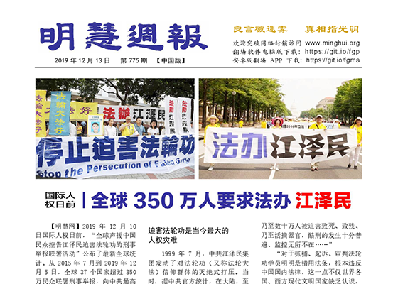 - 明慧周报:大陆版(第七七五期)- 国际人权日前 全球350万人要求法办江泽民