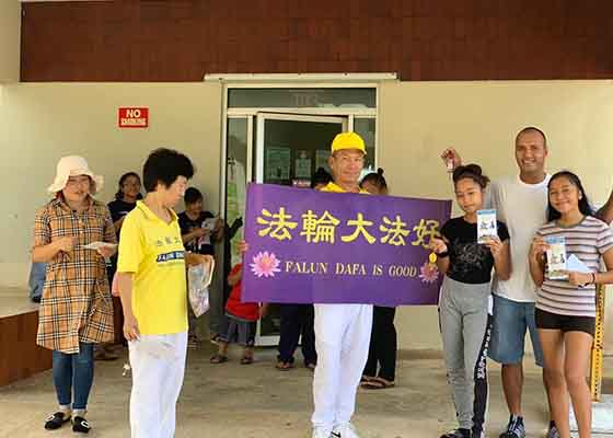 - 法轮大法的福音传播到太平洋岛屿(图)- 美国塞班岛的部份法轮功学员们,于二零一九年十月和十一月,带着大法的福音与真相带到太平洋的岛屿天宁岛和罗塔岛。