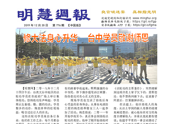 一九九六年,我正在上大学,到二姐家去度暑假,她说法轮功很好,不但能祛病健身,还能提升人的道德。她炼了快半年了,现在身体好了,还怀上了第二个宝宝。