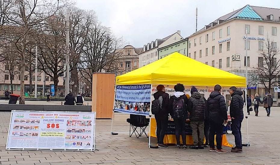 十二月二十一日,法轮功学员在市中心的国王广场(Konigsplatz)举办了信息日。尽管天气寒冷,祥和的炼功场景依然吸引人们驻足观看。在了解到法轮功以“真、善、忍”为修炼准则,中共残酷迫害法轮功,甚至活体摘取法轮功学员器官等事实后,很多人感到震惊,他们纷纷在敦促德国政府制止中共迫害法轮功和敦促德国引入《全球马格尼茨人权问责法》的签名表上签名。