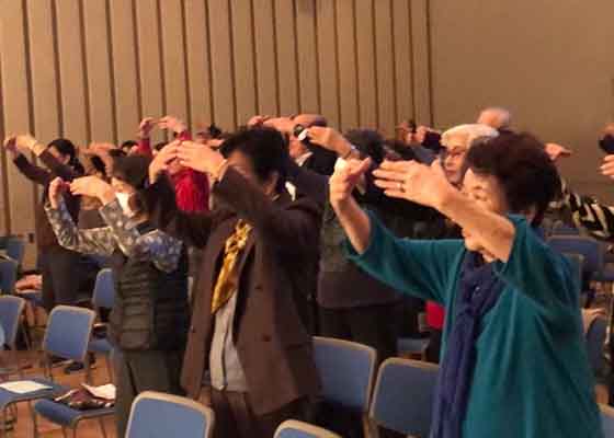 - 日本关西民众文化节上学炼法轮功(图)- 日本关西法轮功学员在多地参加活动,让日本民众体验法轮功功法,与市民进行了很好的互动,让更多人感受到法轮大法的美好。