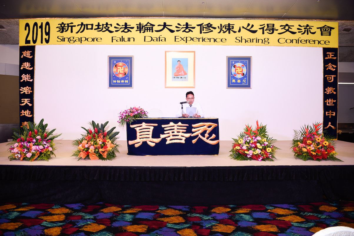 上午九时,法会正式开始。来自新加坡、马来西亚、印尼和越南的法轮功学员汇聚一堂,依次聆听二十位同修的修炼心得。