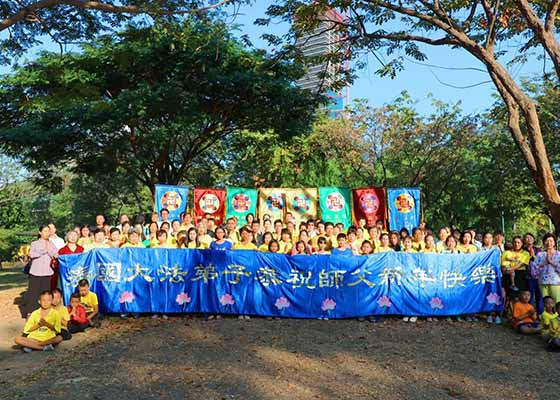 十二月二十二日,泰国各地法轮功学员齐聚首都曼谷仑皮尼公园举行辞旧迎新活动,集体炼功后,给师尊拜年,恭祝师尊新年快乐!