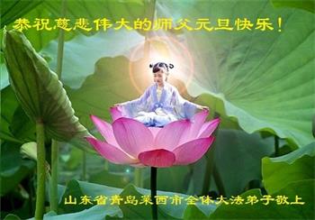 我是黑龙江佳木斯市一老大法弟子,在这元旦到来之前,我们全家人以最崇高敬意、最真诚的心祝我们的慈悲伟大的师尊元旦快乐!