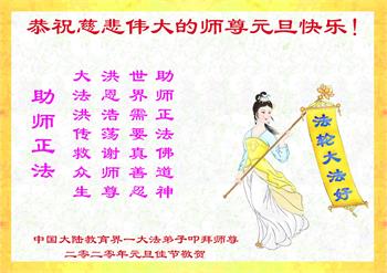 2020年新年到来,在中国各地公检法司、军队、军队院校、政府机关等单位工作的大法弟子们,向李洪志师父致以节日的问候,感恩师父救度!