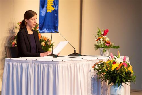 来自德国的卡特琳·苏姆普(Kathrin Sumpf)女士介绍了参与翻译大纪元文章《魔鬼在统治着我们的世界》项目的心得体会。通过翻译这部丛书,她去掉了自身很多不好的特性和物质,不断认识到自己身上隐藏的共产主义观点,还有和翻译组同修配合时的执着心,和去掉这些不好的物质的过程。她认为这部书就象凿进存在于这个空间旧物质里的一个楔子。它的影响是巨大的,不仅影响了这个层面的社会,还扬起了几百年、甚至上千年的尘埃。