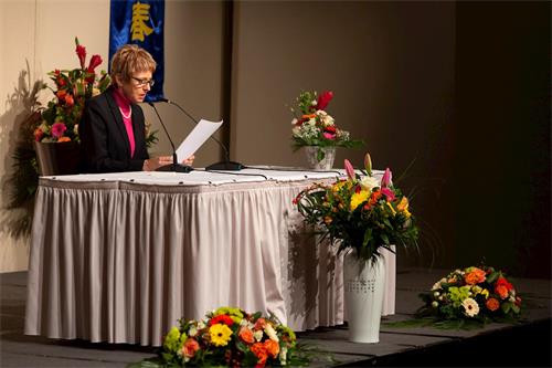 来自德国的莫妮卡·弗仁舍(Monika Frensche)女士交流了自己从独自一人修炼到参加推广神韵项目的变化过程。期间,她还遇到了奇迹。一次弗仁舍发神韵传单时背朝下跌下了阶梯,并短时间失去了知觉。右脚脚趾在脚跟的位置。她大声叫“师父”和“真善忍”,然后把脚扭过来,穿上靴子,把雪抖掉,走回了家,爬上三楼。这段时间里她一直念着“师父”和“真善忍”。